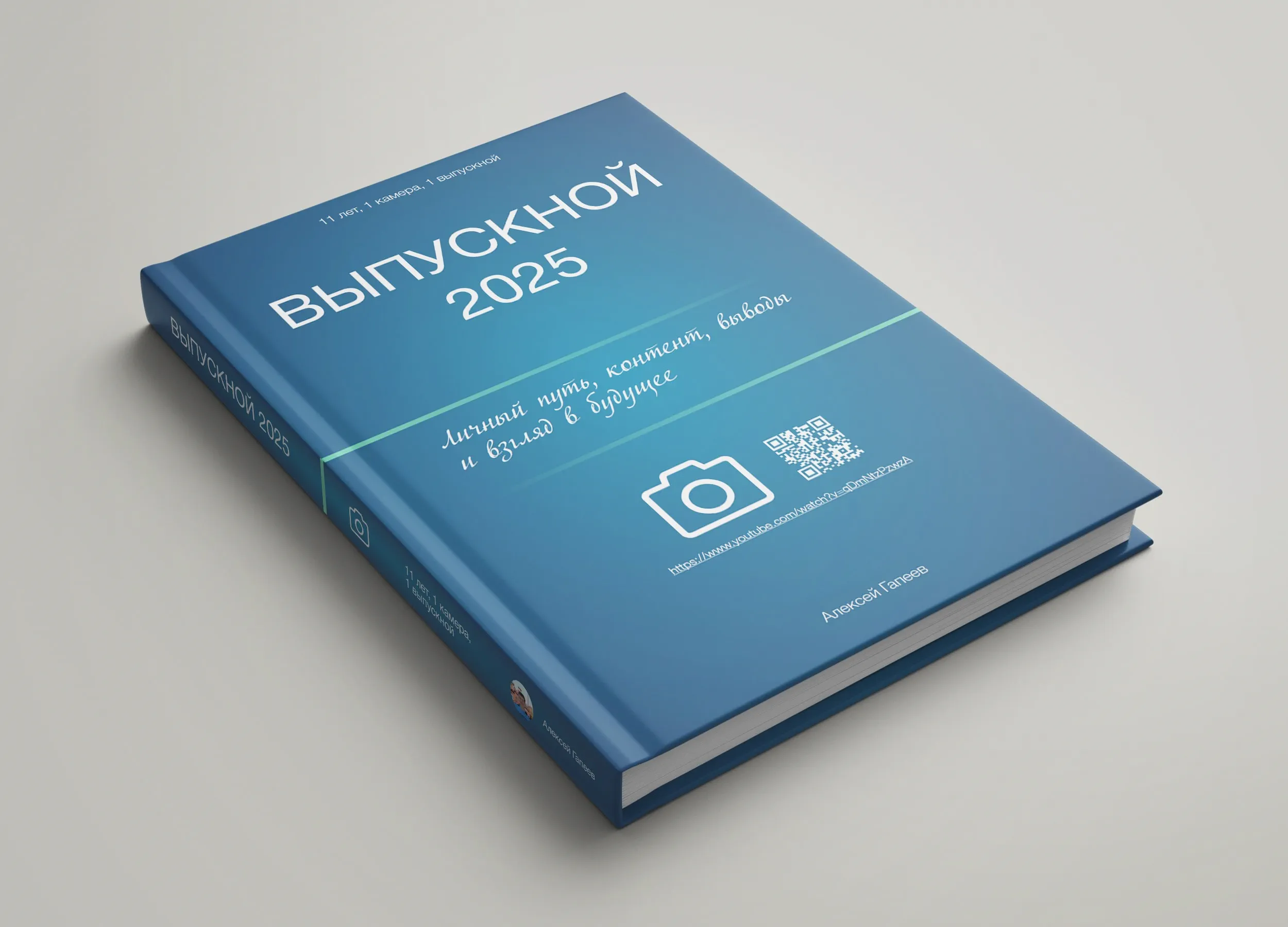 Основой композиции стала градиентная заливка от насыщенного синего к светлому центру. Этот мягкий переход фокусирует внимание читателя в центре обложки — словно приглашает заглянуть внутрь, где начинается история. Именно в центре — ключевое сообщение, выделенное зелёной линией, как визуальный «маршрут»: от детства к выпускному, от момента — к пути.