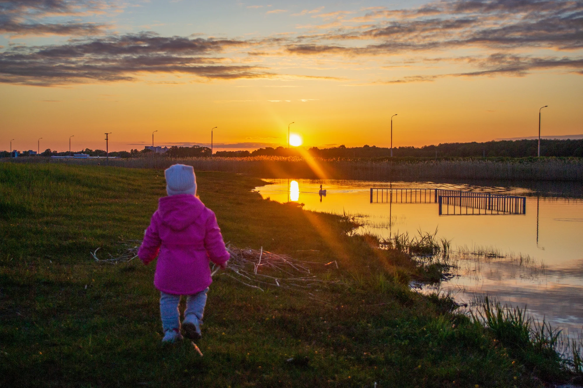 Тёплые краски вечернего света, силуэты и настроение, создающее особую атмосферу.